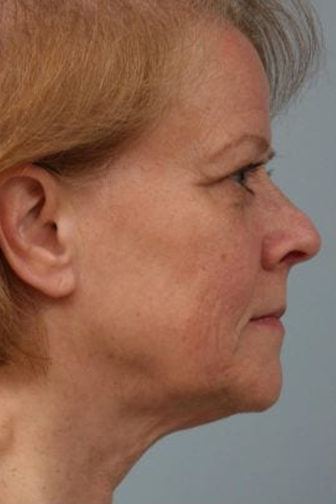 Dr. Williams performed a Weekend Neck Facelift to help improve the jawline and neck tissue. Lines or folds around the mouth are difficult to correct even with a Facelift. Dr. Williams often places excess tissue in the folds from the corner of the mouth to the chin to achieve even more improvement in these lines. This procedure is done by using a combination of local and general anesthesia.